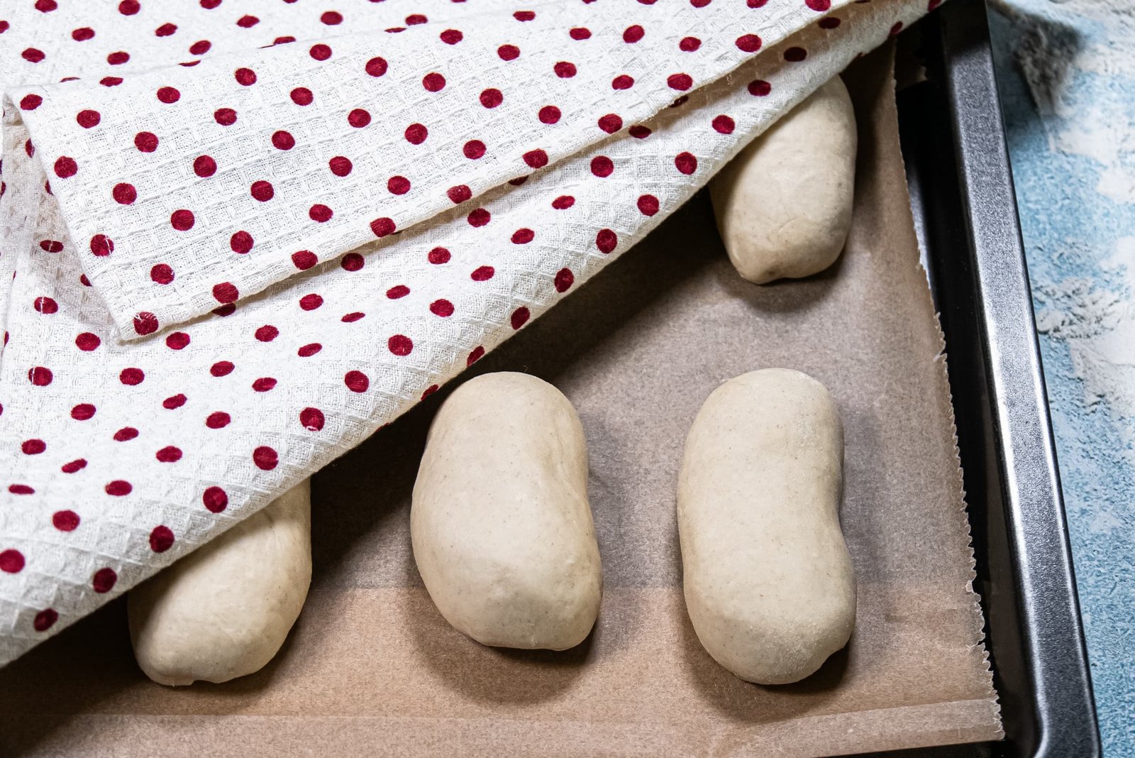- Arrange the shaped buns on a baking sheet lined with parchment paper. Cover them with a towel and let them rise for another 45 minutes to 1 hour.