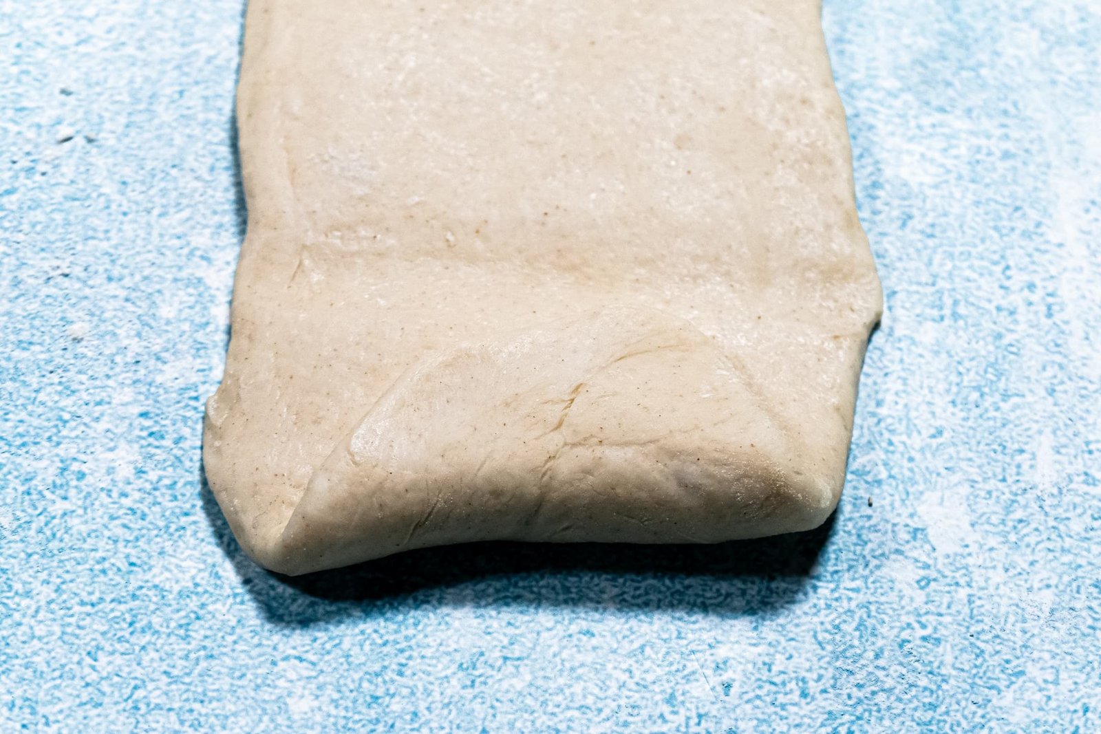 - Using a rolling pin, flatten each portion into a long rectangular shape.
