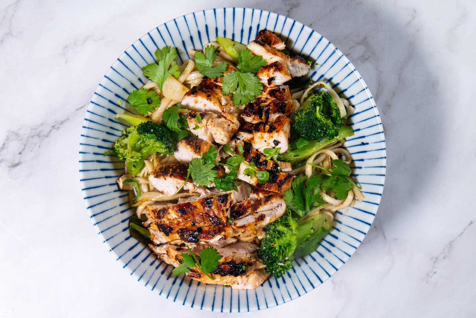 A quick and flavorful stir-fry with grilled chicken, broccoli, and Shandon noodles, tied together with a light umami-packed sauce.